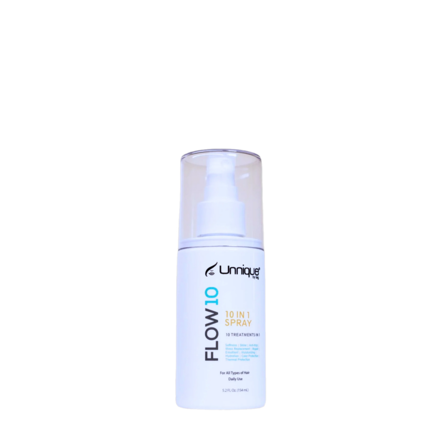 Unique Flow10 es el revolucionario spray milagroso 10 en 1 diseñado para elevar tu rutina de cuidado del cabello. Con una mezcla de ingredientes de primera calidad, proporciona suavidad, brillo y protección completa contra el encrespamiento, los daños y la decoloración.
