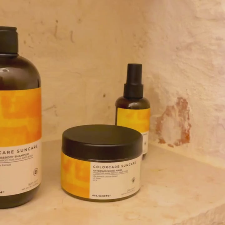 AFTERSUN SHINE MASK es una mascarilla única, formulada para nutrir los cabellos coloreados o tratados después de la exposición al sol, al viento y al cloro. Su superfórmula profesional, con extracto de cactus biotecnológico presente en una cantidad funcional del 1,3%, es rica en nutrientes fundamentales para la salud capilar, lo que la convierte en un tratamiento post-solar esencial para preservar la fuerza y el brillo del color.