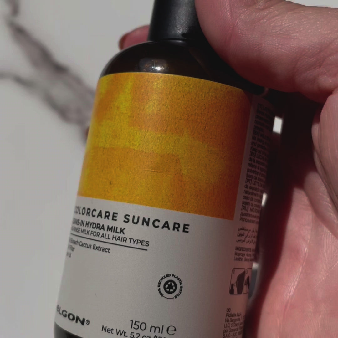 Enriquecido con extracto biotecnológico de agua de cactus, este spray hidratante, emoliente y sin aclarado es un aliado fantástico no solo durante la exposición solar, ya que protege el cabello con sus filtros UV, sino también después de la exposición, ya que desenreda la melena, facilita el peinado y disciplina el cabello deshidratado tras la exposición al sol, al viento, al cloro y al salitre. Se puede aplicar varias veces a lo largo del día; de hecho, acondiciona sin apelmazar y brinda un acabado luminoso.